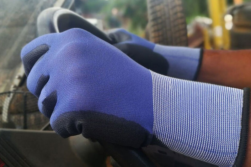 Breathable High Precision 18gg Nylon and Spandex liner with Ultra Tacky and Abrasion Resistant Shiny Nitrile Palm
